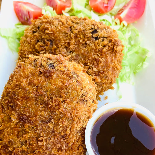 Japanese style croquettes, made with organic ground beef, and potatoes. Comes with Katsu sauce, on the side.